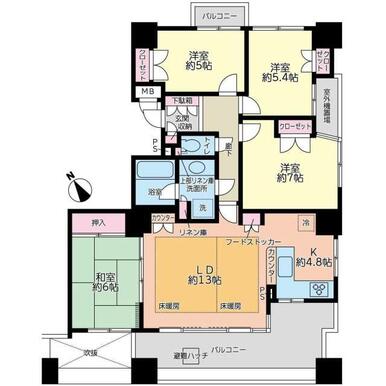 | 間取り(内訳) | 4LDK(和6洋7/5.4/5LDK17.8) | ||